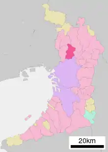 - Хіґашіде М. Історія міст префектури Осака. Адміністративний поділ Японії. (японською). Архів оригіналу за 25 червня 2013. Процитовано 20 вересня 2012.