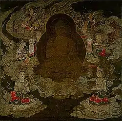 - За легендою Амітабха, коли він ще був бодхісатвою на ім'я Дхармакара, дав обітницю створити такий світ після досягнення ним стану будди.