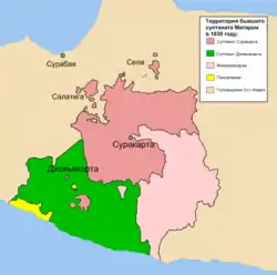 Територіальне розмежування Джок'якарти і Суракарти було досить складним як в правовому, так і в географічному плані. Крім того, що землі новостворених монархій мали дворівневий статус (власне держава і велика особиста вотчина монарха), значна частина колишнього Матарама передавалася в спільне управління сусухунана і султана. Всі ці різнорідні території утворювали безліч відокремлених один від одного анклавів і ексклавів[2][3].