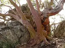 Суничник Єни. Росте на горі Ай-Нікола в районі сел. Ореанда, Крим, в 20 м праворуч від Курчатівської туристичної стежки, що йде вгору, по невеликій ущелині на південному схилі. Обхват стовбура 4,50 м, обхват стовбура над землею 7 м, висота 10 м, приблизний вік 1300 років. Дерево має 10 великих гілок. У 2010 р. Мінприроди України присвоїло суничнику Єни звання Національне дерево України[1]. Названий на честь кримського географа професора В. Г. Єни, який знайшов і описав дерево в 1964 і 1973 рр. Дерево в пригніченому стані — землю біля коріння утоптано, стовбури суничника списані ініціалами туристів, навколо багато сміття. Мабуть, це найстаріший суничник в Криму. Необхідно поставити охоронний знак і огорожу, щоб повністю виключити доступ людей до дерева. Отримав статус ботанічної пам'ятки природи в 2011 р. з ініціативи Київського еколого-культурного центру[1].