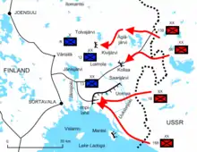 У період з січня по квітень 1940 року радянські залізничні війська проклали залізницю з Петрозаводська до Суоярві. Протяжність дороги становила 132 кілометри. Її будівництво закінчилося після укладення мирного договору 1940 року. Перший поїзд пройшов по новій лінії 15 березня 1940 року[2][3]. 20 березня 1940 року в Суоярві було виведено штаб 56 стрілецького корпусу. 23 листопада того ж року він був перетворений в штаб 7-ї армії.