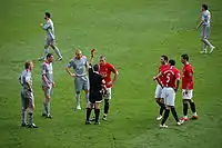 ХуліганствоЗ підйомом футбольного хуліганства в Англії в 1970-і-1980-і роки під час очних протистоянь двох клубів між уболівальниками часто виникали інциденти, пов'язані з хуліганством і насильством. Після завершення фінального матчу кубка Англії 1996 один з уболівальників «Ліверпуля» плюнув в Еріка Кантона і спробував ударити Алекса Фергюсона в той момент, коли гравці «Манчестер Юнайтед» піднімалися сходами стадіону «Вемблі» для отримання кубка з рук герцогині Кентської [9]. 2006 року після матчу кубка Англії між двома командами уболівальники «Ліверпуля» атакували машину швидкої допомоги, яка перевозила отримав у матчі важкий перелом ноги Алана Сміта [10]. На «Енфілді» в дні матчів проти «Манчестер Юнайтед» уболівальникам заборонено близько наближатися до тунелю, через який команди виходять на поле. Заборона діє після інциденту, що стався в кінці 1990-х років, коли вболівальник «Ліверпуля» жбурнув яйце в Алекса Фергюсона. Примітки