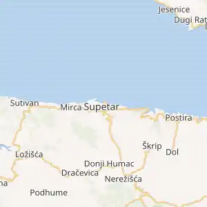 Місто розташовано за 45 хвилин плавання поромом судноплавної компанії «Ядролінія» з материкового порту Спліт, розміщеного навпроти Супетара через протоку Брацький канал.