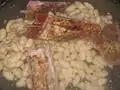 Копчені свинячі ребра та квасоля під час варіння