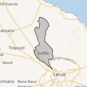 Сурбо розташоване на відстані[1] близько 510 км на схід від Рима, 135 км на південний схід від Барі, 7 км на північний захід від Лечче.