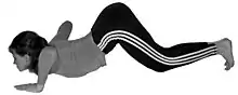 | 6 | Аштанга Намаскара | поза поклоніння восьма точками | Просковзнути з баласани, поклавши на підлогу вісім точок: підборіддя, груди, обидві долоні, обидва коліна і пальці обох ступнів. | видихаючи | ![]() | |