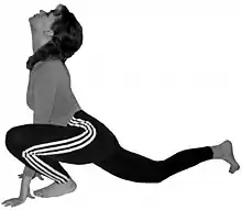 | 9 | Ашва Санчаланасана[1] | поза наїзника | Повторення четвертої пози з упором на другу ногу | з вдихом | ![]() | |