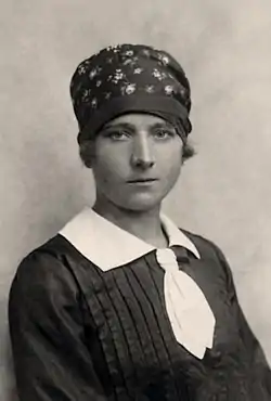![]() Оксана Суховерська в руханковому строї товариства «Сокіл-Батько». З приватного архіву Степана Гайдучка (м. Львів). | |