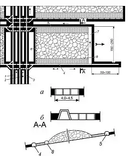 На пластах крутого падіння застосовується система розробки лава-поверх зі стелеуступним або прямолінійним вибоєм (рис. 3). Виїмкові виробки залежно від умов розробки можуть бути пластовими (у більшості випадків) або польовими. При пластовому розташуванні підготовчих виробок їх охорона в конкретних умовах здійснюється ціликами вугілля, бутовими смугами або різноманітними штучними спорудами (тумбами із залізобетонних блоків, литими смугами із швидкозатвердіваючих матеріалів, органним або кущовим кріпленням, кострами, бутокострами або їх комбінаціями). При польовому розташуванні дільничних підготовчих виробок останні з'єднуються з пластовими похилими ґезенками або проміжними квершлаґами.