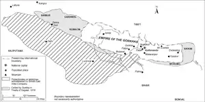 Загальні територіальні втрати склали третину території, в тому числі Сіккім (чоґ'ял або монарх, який підтримав англійців у війні), території на захід від річки Калі, Гархвал (зараз Уттаракханд); частину територій на захід від річки Сутледж (зараз Хімчал-Прадеш) та більшу частину регіону Терай (частина останнього була повернута Непалу в 1816 році, а ще частина в 1865 році в подяку за допомогу Непала в пригніченні індійського повстання 1857 року).