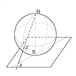 задає відображення сфери з виколотим полюсом на комплексну площину, яке називається стереографічною проекцією.
