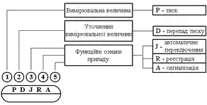 Пристрої і засоби автоматизації показують на функціональних схемах розгорнутим способом, згідно з яким кожний прилад чи блок, який входить в єдиний комплект, показують окремими умовними графічними зображеннями. У верхній частині зображення (кола, овалу) наносять позначення вимірюваної величини та функції, яка виконується приладом в порядку їх розміщення зліва направо. В нижній частині вказують позиційне позначення комплекту вимірювання або його окремих елементів.