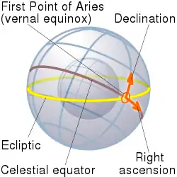 - Об'єкт на небесному екваторі має схилення 0°