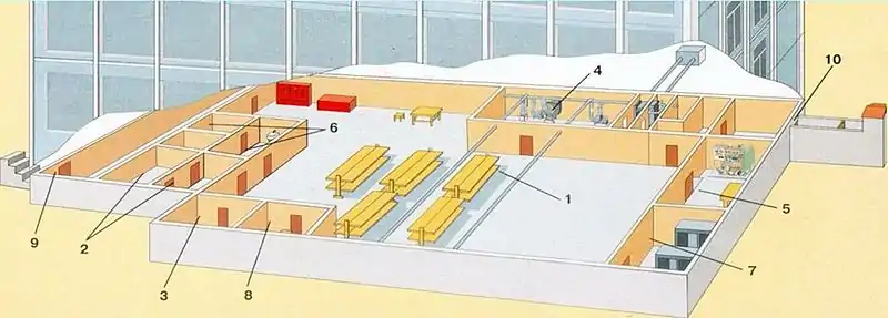 При проектуванні та будівництві прагнуть до того, щоб фільтровентиляційна камера, санвузли та інші допоміжні приміщення займали мінімальну площу.