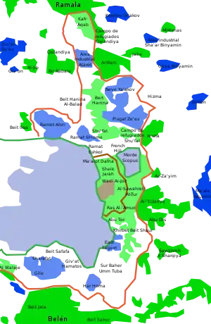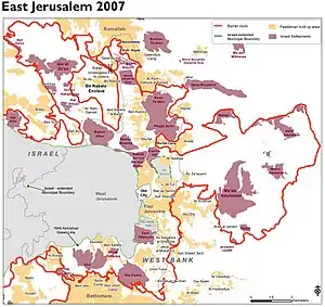 У переписі 1967 ізраїльська влада зареєструвала 66000 палестинських жителів (44000 проживають в районі, відомому до війни 1967 року, як Східний Єрусалим, і 22000, в районі Західного берега в додатку до Єрусалиму після війни). Лише кілька сотень євреїв проживали в Східному Єрусалимі в той час. До червня 1993 року, євреї стали більшістю у Східному Єрусалимі:. 155000 євреїв були офіційно зареєстровані, порівняно з 150 000 палестинців [ 64 ] Наприкінці 2008 року, населення Східного Єрусалиму було 456300, що становило 60% мешканців Єрусалиму. З них 195 500 (43%) євреї, (включаючи 40% єврейського населення Єрусалиму в цілому), 260800 (57%) є мусульманами (включаючи 98% мусульманського населення Єрусалиму). [ 65 ] У 2008 році, Палестинське центральне статистичне бюро повідомило що число палестинців, які проживають в Східному Єрусалимі, було 208 000 . [ 66 ] Наприкінці 2008 року основними арабськими кварталами у Східному Єрусалимі були: Шуафат (38800), Бейт-Ханіна (27900), Мусульманський квартал (26300) -Тор вкл. -Савана (24400). Основні єврейські квартали включають: Рамот Алон (42200), Пісгат Зеєв (42100), Гіло (26900), Неві Яків (20400), Рамат-Шломо (15100) і Східний Тальпіот (12200). Старе місто має арабське населення 36681 і єврейське населення 3847. [ 67 ]