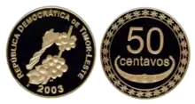 Національною валютою країни з січня 2000 року є долар США. Крім того, з 2003 року використовуються власні монети тиморські сентаво, що відповідають по курсу американському центу. Випускаються монети номіналом 1, 5, 10, 25, 50,100 та 200 сентаво.