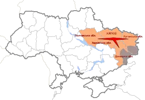 Донецька область, Луганська область, Полтавська область, Харківська область[1] |