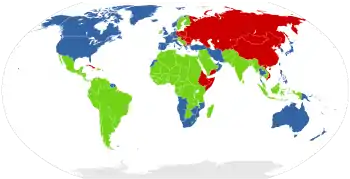 Червоним позначено: Східний блок (другий світ)