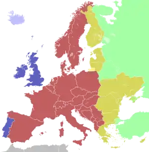 | синій | Західноєвропейський час (WET, GMT) (UTC+0) Західноєвропейський літній час (WEST, BST, IST) (UTC+1) |