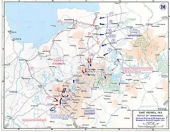 8-ма армія (командувач генерал-полковник Максимілиан фон Прітвіц-унд-Гаффрон, з 23 серпня 1914 командування замінено на: командувач Пауль фон Гінденбург, начальник штабу Еріх фон Людендорф, генерал-квартирмейстер Хоффман)