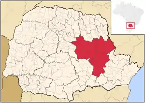 Східно-центральна частина штату Парана на карті штату