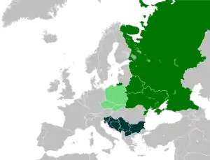 | Близькі до: | Балтів, західних слов'ян і південних слов'ян |