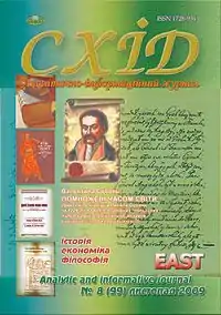 «Схід» — український аналітично-інформаційний часопис, багатогалузеве наукове фахове видання з економіки, історії, філософії. ISSN 1728-9343