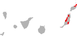 Ендемік Канарських островів. Поширений на островах Фуертевентура, Лансароте і дрібному острівці Лобос. Мешкає у чагарниках середземноморського типу, помірних луках, кам'янистих ділянках, на пасовищах і в міських районах.