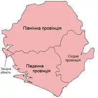 Сьєрра-Леоне поділяється на 3 провінції та одну область, які у свою чергу поділяються на 14 округів: