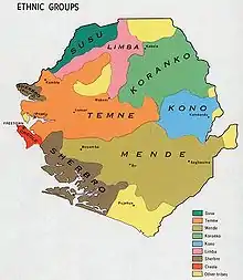 Мови — англійська (офіційна, більшість населення нею не володіє), менде (поширений на півдні), темне (поширений на півночі), кріо (креольська мова на основі англійської, мова міжнаціонального спілкування, його розуміє до 95 % населення).