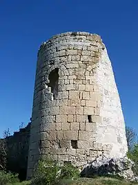 Зі східного боку башти знаходилися ворота, арка яких нині обрушена, а із західної — хвіртка вилазки. І в стіні і в нижній частині башти зроблені бійниці. Башта складена з великих вапнякових блоків.