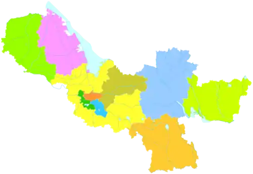 Міський округ поділяється на 5 районів, 2 міських повіти й 3 повіти: