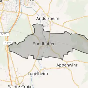 - Розташування муніципалітету Сюндоффен на мапі Франції та сусідні муніципалітети