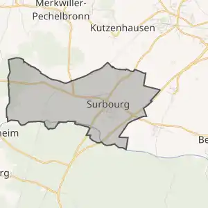 - Розташування муніципалітету Сюрбур на мапі Франції та сусідні муніципалітети