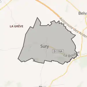 - Розташування муніципалітету Сюрі на мапі Франції та сусідні муніципалітети