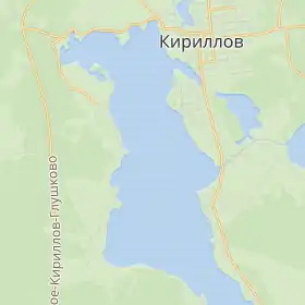 Весь північний берег озера та більшу частину східного займає місто Кирилов. Площа поверхні озера — 9,57 км² (за іншими даними — 7,44 км²), площа водозбору — 112 км². Лежить на висоті 116,6 метра над рівнем моря. Довжина берегової лінії — 21 кілометр, розміри — 6,6 на 3 кілометри. Максимальна глибина — 26 метрів, середня — 9,1. Обсяг води — 89,7 млн м³.