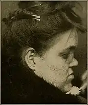 ![]() Просідання спинки носа внаслідок сифілітичного враження носової перегородки.[1] Просідання спинки носа внаслідок сифілітичного враження носової перегородки.[2] | |