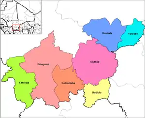 - Адміністративний центр - місто Сікассо; інші міста - Кутіала, Бугуні.