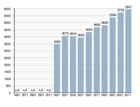 Станом на 31 грудня 2014 року в муніципалітеті офіційно проживало 415 іноземців з 28 країн, серед них 192 громадяни країн Євросоюзу та 3 громадяни України.[4]