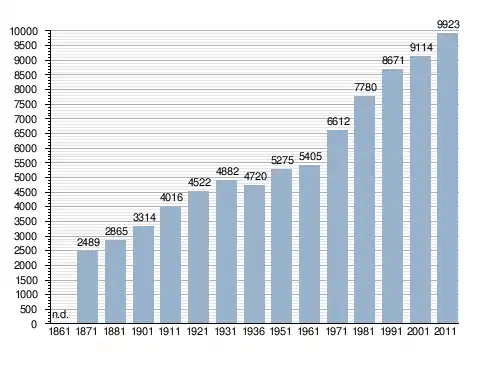 Станом на 31 грудня 2014 року в муніципалітеті офіційно проживали 753 іноземці з 57 країн, серед них 156 громадян країн Євросоюзу та 20 громадян України.[4]