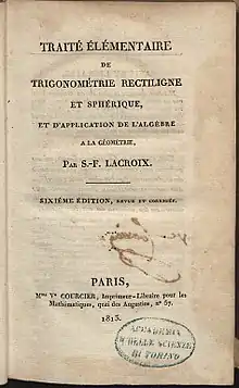 - Ivor Grattan-Guinness (1990) Convolutions in French Mathematics, 1800—1840, § 2.5.4 Lacroix: scientific educator, pp 113,4, Science Networks: Historical Studies v. 2, Birkhäuser ISBN 3-7643-2240-3