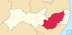 | Сусідні мезорегіони | Мата-Пернамбукана; Сертан штату Пернамбуку; Сільськогосподарський район штату Алагоас (AL); Схід штату Алагоас (AL); Сертан штату Алагоас (AL); Сільськогосподарський район штату Параїба (PB); Борборема (PB) | ||