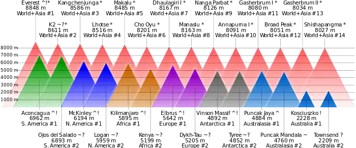 Еверест | 8848 | Гімалаї | Азія | ✔ | ✔ | 29 травня 1953 [в 3] | |