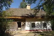 Про хату без сіней казали, що вона «без штанів»[15]. Загорожа біля сіней називалася засі́нок[16].
