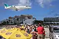 Літак іде на посадку (аеродром розташований прямо біля пляжу)