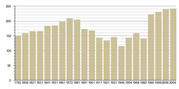 Динаміка населення (base Cassini de l'EHESS pour les nombres retenus jusque 1962[3], base Insee à partir de 1968 (population sans doubles comptes puis population municipale à partir de 2006)[4] · [5] ):