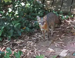 Сіра лисиця в ботанічному саду університету Берклі, США