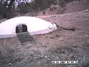 Сіра лисиця досліджує бак для збору води, Каліфорнія