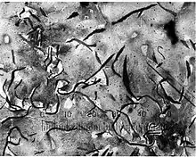 - Сірі чавуни з вермикулярним графітом[3] і позначається ЧВГ 30, ЧВГ 35, ЧВГ 40, ЧВГ 45. Позначення: Ч — чавун, ВГ — форма графіту (вермикулярний). Цифра в марці чавуну показує границю міцності на розрив в МПа×10−1 (кгс/мм²). Ці марки чавуну можуть мати в структурі крім графіту вермикулярної форми не більше 40 % кулястого графіту. Часто цей вид чавуну розглядають окремо, поряд з ковкими і високоміцними чавунами.
