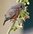 Харчується комахами (термітами, жуками, гусеницями, мухами та ін.), нектаром, пилком і квітками рослин. У період дозрівання харчується ягодами лантани (Lantana), жожоби (Zizyphus), плодами фікуса і насінням Альбіції (Albizzia).